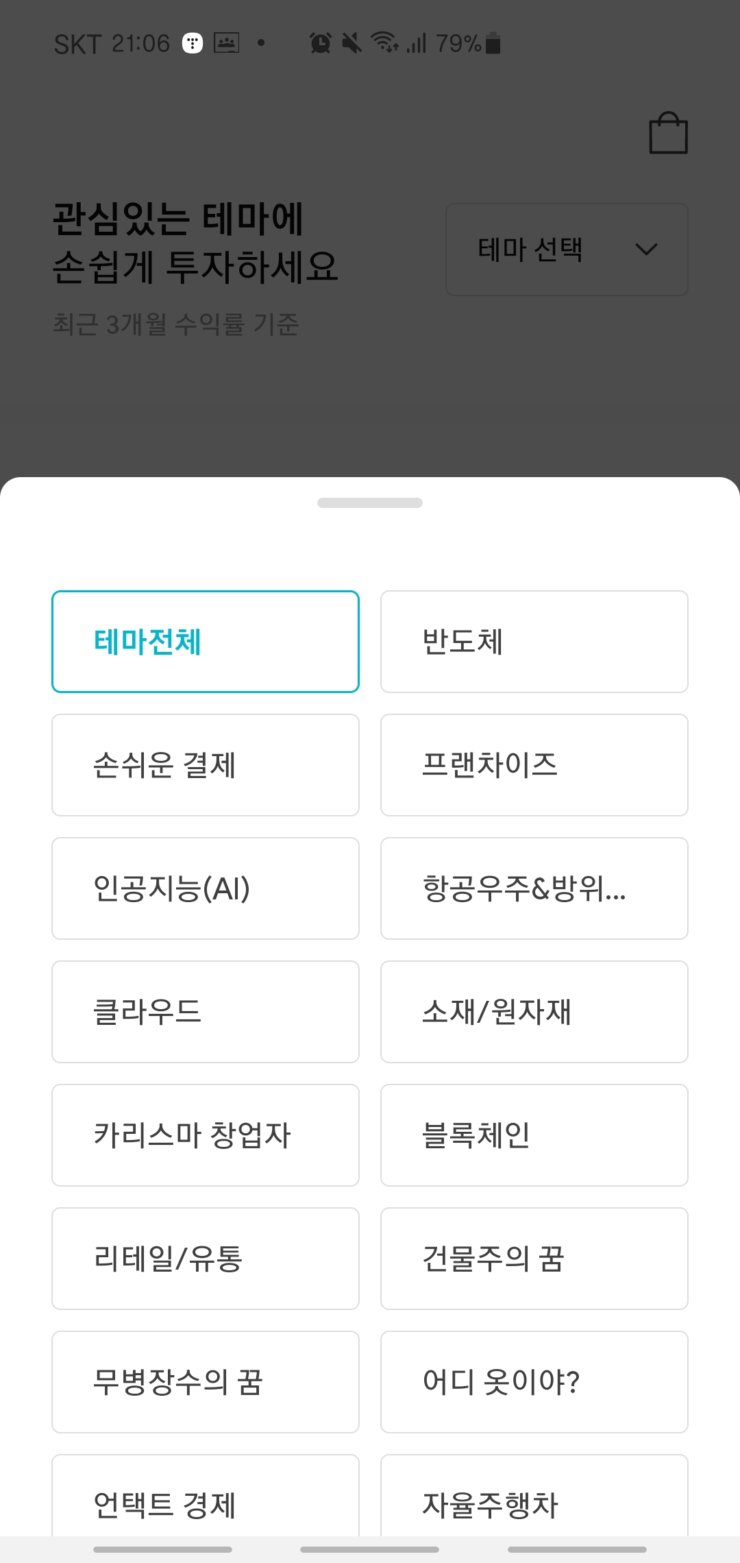환전 걱정이 없습니다. 원화 거래이기 때문에 환전으로 인한 수수료 계산이 필요가 없습니다. 이 말은 즉 환전 우대 수수료가 얼마며, 원달러 환율 얼마에 사서 얼마에 팔았는지 알 길이 없기 때문에 환차익에 따른 이득을 봤는지 못 봤는지 알 수가 없습니다. 깜깜이가 되는 거죠. 단점이기도 하지만, 이 어플을 사용하는 타깃 고객층을 생각한다면 장점인 것 같습니다. 그리고 주문하고 조회하는 UI가 아주 편하게 되어 있습니다. 또 테마 정리나 소액으로 주문을 할 수 있다는 것도 장점이네요.