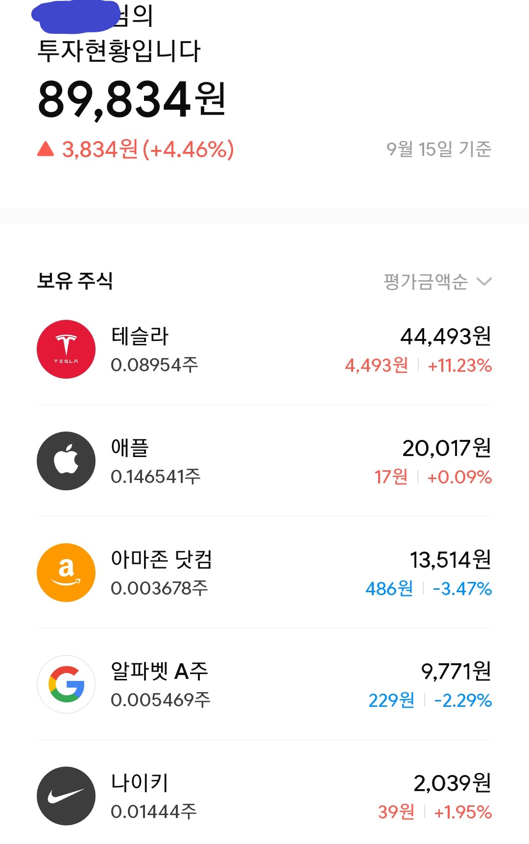 그럼 소소하지만 제 수익률 한번 보겠습니다. 현재 시간(09/15) 기준이니, 사실 큰 의미는 없습니다.