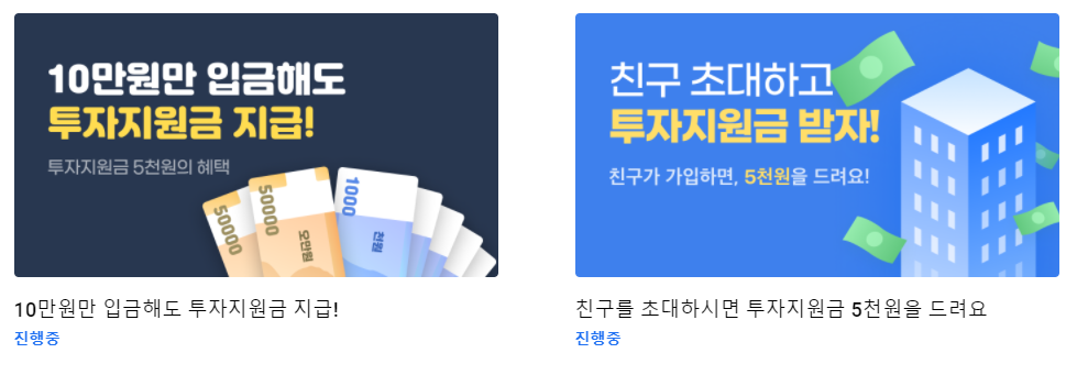 첫 번째, 10만 원 입금 시 5,000원 투자지원금 추가 지급!