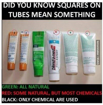 '초록색은 천연물질 표기' 등 루머 떠돌아 '아이마크'는 기계 센서 인식 돕는 역할 로션·클렌징 등 튜브형태의 화장품·생활용품에도 적용 【서울=뉴시스】김종민 기자 = 최근 온라인 상에서 치�