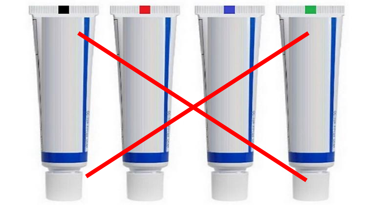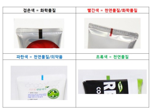치약용기 세로선 '아이마크', 기계 센서 인식 돕는 역할…아이마크는 로션·클렌징 등 튜브형태의 화장품·생활용품에도 적용검은색은 화학물질, 빨간색은 천연물질·화학물질, 파란색은 천연물