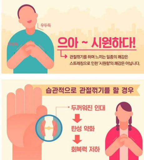 많은 분들이 손가락 마디 꺾기를 자주 하시리라 생각됩니다. 특히 남자들은요. 저 또한 회사에서 일하다 손가락이 쫌 뻐근하다 싶으면 바로 손가락들 뚜두둑 꺾어주는데요, 오늘은 잘못된 건강 상식 제 1탄